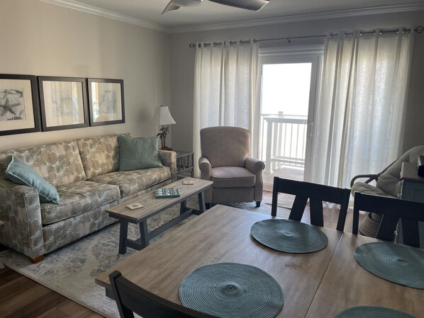 Check in is super simple. Location is in an area with very little to do and minimal restaurants. However, a grocery store and more restaurants are only 15-20 minutes away. The lack of attractions really makes it feel like a VACATION, no pressure to sight see and go out to fancy dinners every night. Relaxing on the beach, by the pool, or on the balcony listening to the waves, is perfection. Our kids enjoyed staying here, too. The unit is close to the stairs to the parking lot and the beach is merely steps away, as well. The unit provided plenty of extra bedding, was beautifully decorated and clean. Our kids enjoyed searching for the tiny Jesuses around the unit. The pool gets VERY crowded during the day, but is well maintained. The beach was busy, but a lot of space to spread out. Perfect location to slow down and relax. The washing machine/dryer were very useful and appreciated.You do have to bring your own towels, paper towels, toilet tissue, (laundry soap if you plan to do laundry), and trash bags, so keep that in mind.