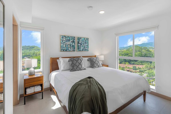 Kick back with a cold drink on your private patio and soak in the breathtaking mountain views from this high-rise condo. With separate King, Queen, and bunk-bed rooms, plus living room sofa-bed, there's enough space for up to 7 guests family. Each bedroom offers amazing views and plenty of natural light. And the best part? You’re just steps from Jaco beach, and only 5 minutes from the gorgeous beaches of Hermosa and Esterillos, known for their fantastic surfing.