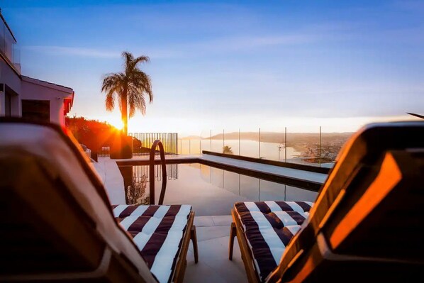 - Heated saltwater pool with surrounding sun loungers