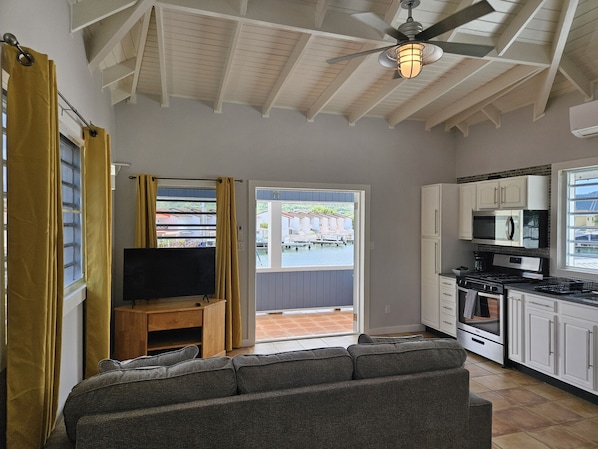 This one-bedroom waterfront apartment enjoys elevated waterfront views.