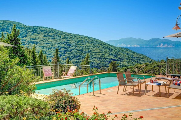 Villa Vigli Retreat has superb views over the hillside leading down to the bay of Agios Jerusalem. A choice of beaches and the amenities of the beautiful harbour at Fiskardo are within easy reach by car. This charming 2 bedroom house has traditional décor and wooden features, all with all conveniences including WiFi, air conditioning/heating in the bedrooms and living area plus pool heating.