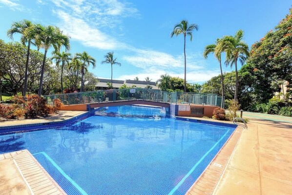 Date un chapuzón durante todo el año en una de las piscinas con mayor temperatura controlada en Kihei; se extiende desde un área para niños apta para niños en el lado norte hasta nueve pies en el extremo profundo. Si siente la necesidad de aflojar los músculos después de un animado juego de tenis en una cancha privada, hacer ping pong en la cabaña o pasar un tiempo jugando al tejo, simplemente súbase a la bañera de hidromasaje adyacente a la piscina principal.