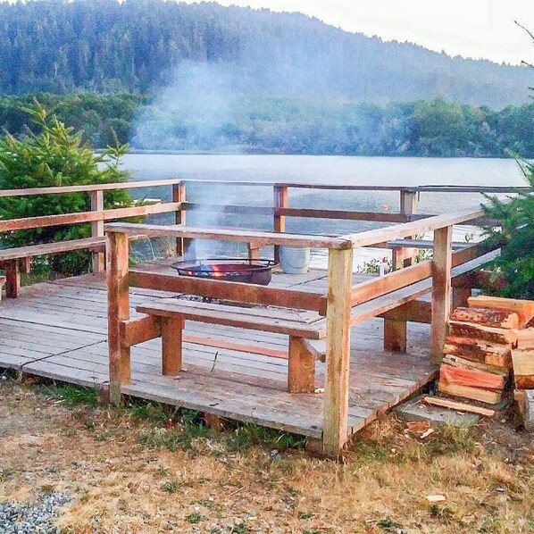 The river was dried up, and the fire pit isn't on the property. It's for the entire campgrounds.