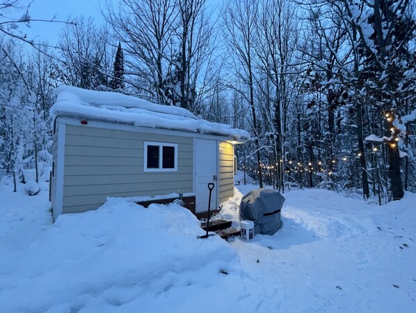 The Yooperlite house is located on a 10 acre parcel with our primary residence and homestead. The tiny home is about 100 feet up our private driveway, located on the right side - you can't miss it. Our home is further up the driveway passed the tiny home, and we ask that you remain in the general vicinity of the Yooperlite house and don't venture up to our house. There is plenty of outdoor space on our property that you are welcome to enjoy. This includes fire pits and picnic tables adjacent to the tiny home. Our house and the tiny house are in two separate spaces to provide you with privacy during your stay.