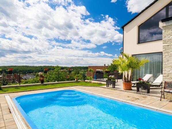 Villa confortable del año 2018. En la periferia Lány, lugar tranquilo, soleado, elevado. Comunitario: terreno, jardín, piscina (6 x 3 m, 150 cm de profundidad, Disponible por temporada: 01.May. - 30.Sep.). Muebles de jardín. En el inmueble: calefacción central. Garaje individual. Tienda 500 m, restaurante 800 m, parada autobús "U hřbitova" 450 m, estación de tren "Stochov-Slovanka" 2 km, piscina 12 km, piscina cubierta 4 km. Atracciones en los alrededores: Zámek Lány, Lánská obora 1 km, Muzeum T. G. Masaryka 1.2 km, Hrad Křivoklát 16 km. El propietario no acepta grupos de adolescentes/jóvenes. A tener en cuenta: el propietario vive en el mismo inmueble.