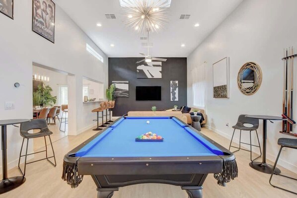 Our living room and all bedrooms features a Smart TV (with access to all major streaming sites!) for you to unwind with your favorite show. Challenge your friends and family to a quick game of pool or any of the retro arcade games. Need to take a quick Zoom call or send out a few emails? We got you with our complimentary high-speed internet!