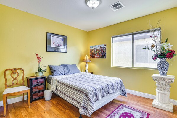 Spend a relaxing month or more in Las Vegas at this well-outfitted vacation rental just outside all the action. This 5-bedroom, 3-bath house is the ideal base for all groups, whether you're in town for Sin City's shows and restaurants or for a convenient place to call home when work brings you to the area. After a day out and about, treat yourself to dinner on The Strip or a barbecue on the private patio. Book now!