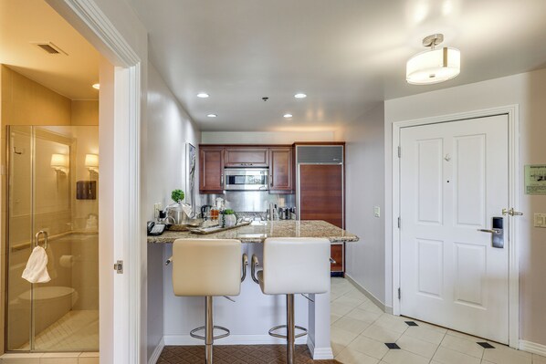 Los alojamientos de Walk to Strip: Condo w/ Balcony in Las Vegas! disponen de aire acondicionado. En este apartamento de 3 estrellas, los alojamientos incluyen cocina con placa de cocina, microondas, utensilios de cocina y lavavajillas. Los baños están equipados con bañera o ducha.