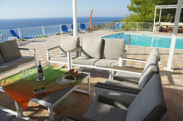 A orillas del agua, esta villa ofrece alojamiento a quince minutos a pie de Mar Jónico y Playa Kathisma. Megáli Pétra y Skála Gialoú también están a menos de 10 kilómetros.