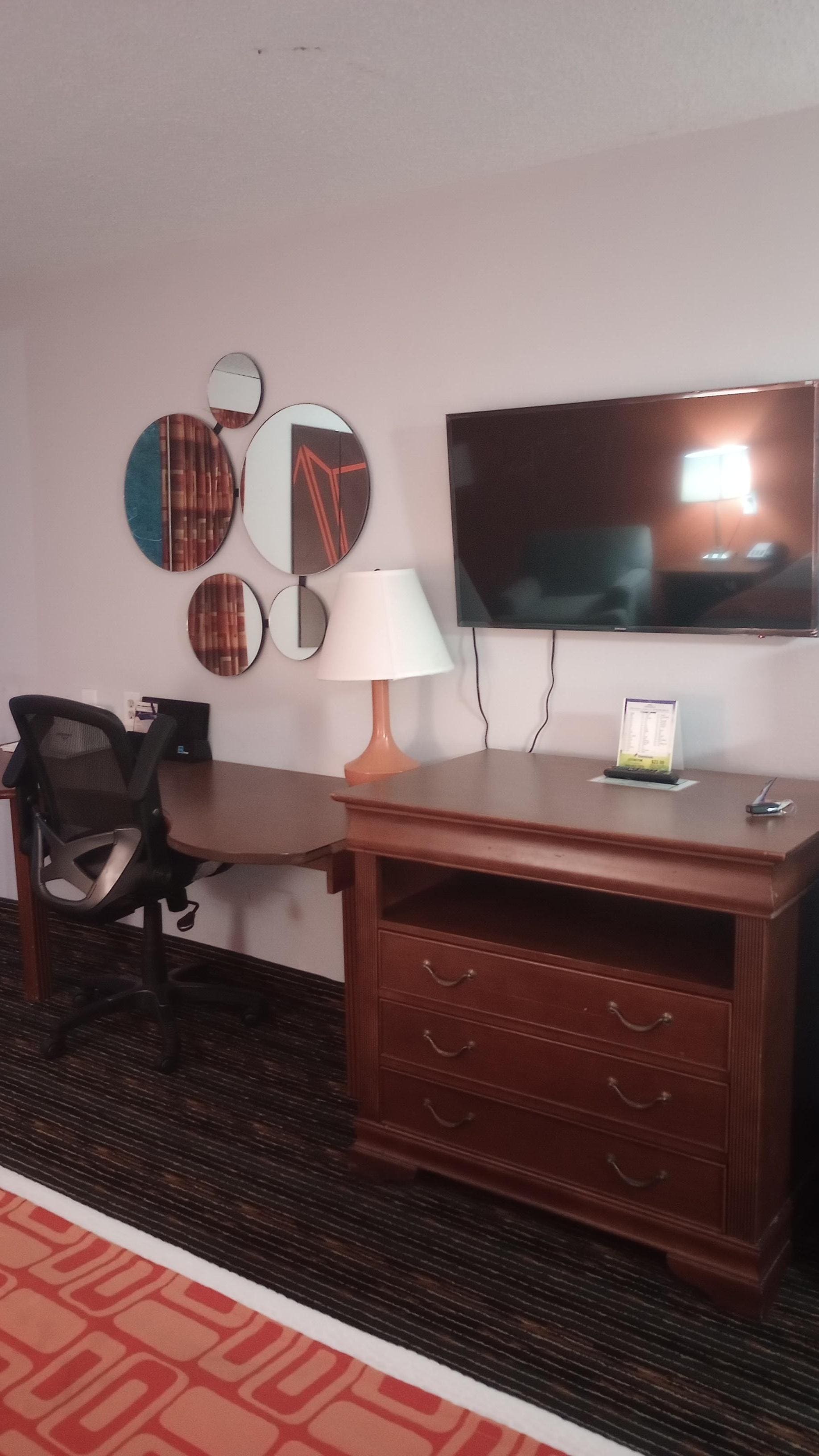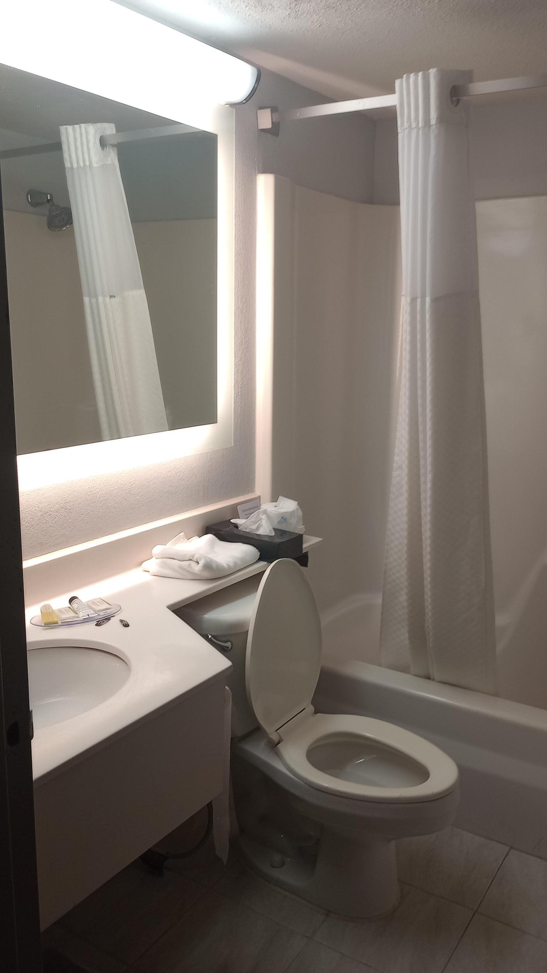 Giving a 4 star mostly due to other guests noise late at night, like slamming doors sporadically in the wee hours (I work midnights so am used to staying awake but it's disrespectful to slam friggin doors while others are trying to sleep). Outside hotel and lobby areas are in great condition, rooms a lil more rough, probably what you can expect in a typical Super 8. Affordable tho. The views from this hotel are perfect to watch the sunset, with several provided benches in front, the building itself is located atop a hill, win-win.