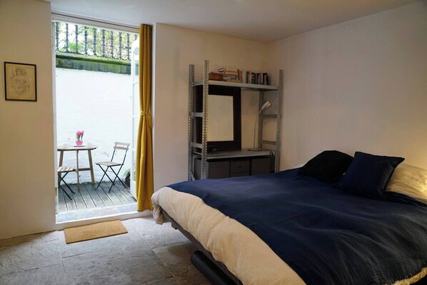 Spacious bedroom in characterful period flat.