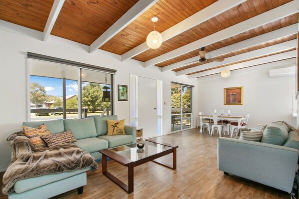 We had an amazing stay here, Clare maintains the property at a very high standard and was very thoughtful with a welcome bouquet of goodies for the whole family. There’s everything you need - from streaming TV to kids toys and canoes. The kitchen is well stocked with all essentials. The front and back porches are a great place to enjoy the birds and sip on your drinks. Location is just fabulous, walking distance to the lake and close to all good things Loch Sport offers including shops, coffee and of course the national park and golden beach/ ninety mile beach.