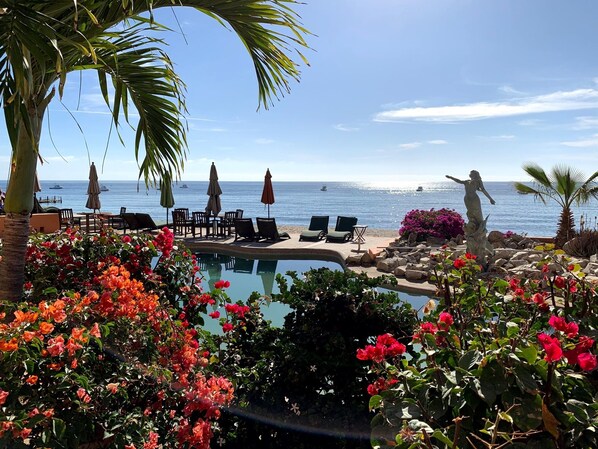 Lujosa Planta Baja Villa frente al mar invita a caminar justo en la puerta de la playa de arena blanca y refrescante piscina. Esta propiedad junto con su propiedad hermana, Palmas De Cortez Resort, se reconocen como "El lugar para estar" en Los Barriles.