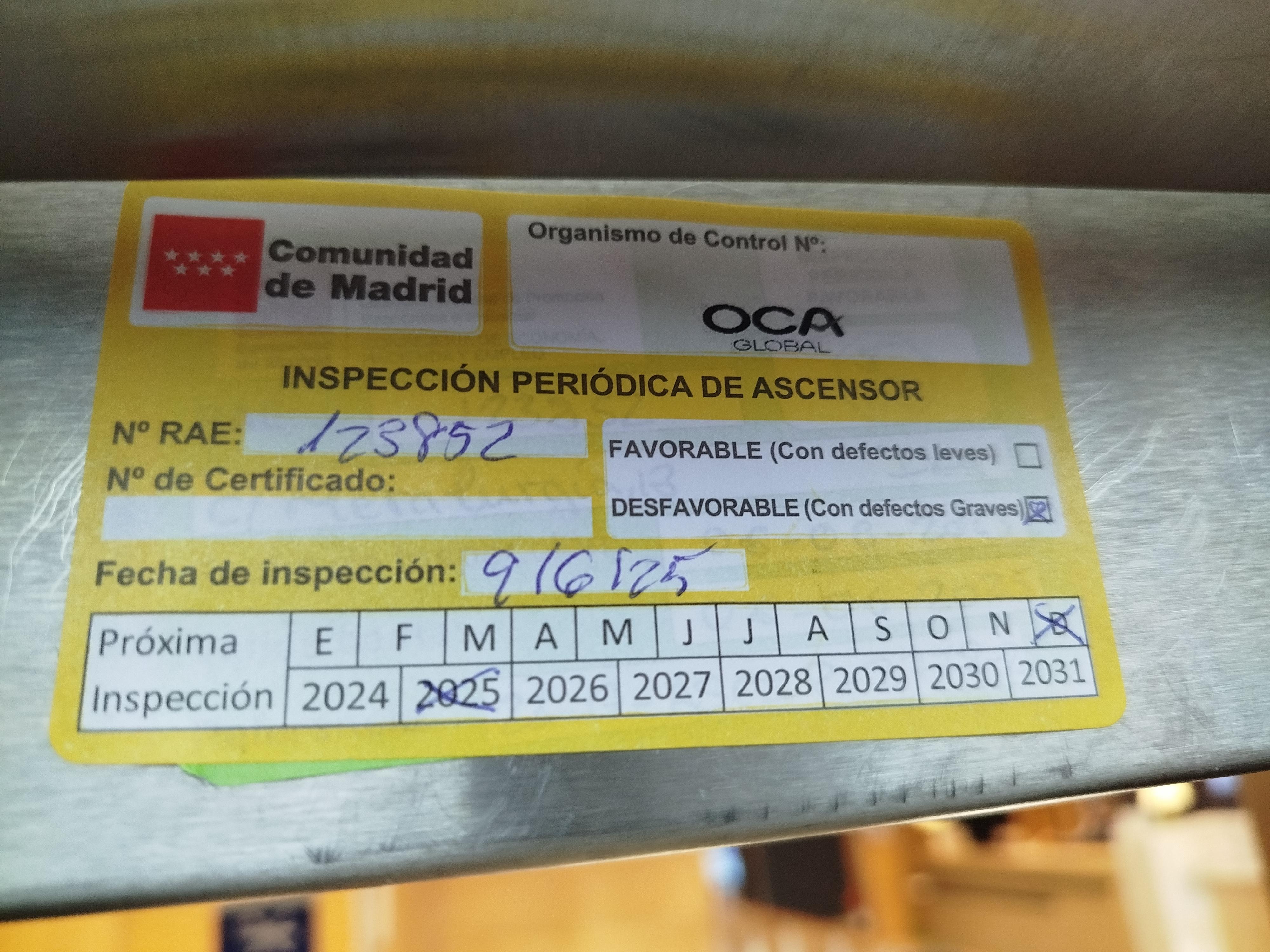 deficiencias graves en ascensor y el hotel no inf