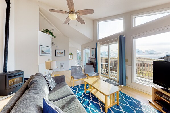 La casa en sí es soleada y acogedora, con una decoración náutica sutilmente moderna y cálidas maderas duras que complementan las vistas al océano. La cocina, el comedor y la sala de estar del piso superior son abiertos y espaciosos, lo que permite a su grupo socializar mientras prepara comidas o se acurruca junto a la estufa de pellets a la antigua. Disfruta de una película en la televisión por cable con reproductor de DVD (o trae tus viejas cintas de VHS para la videograbadora), o toma un juego de mesa para un entretenimiento más interactivo.