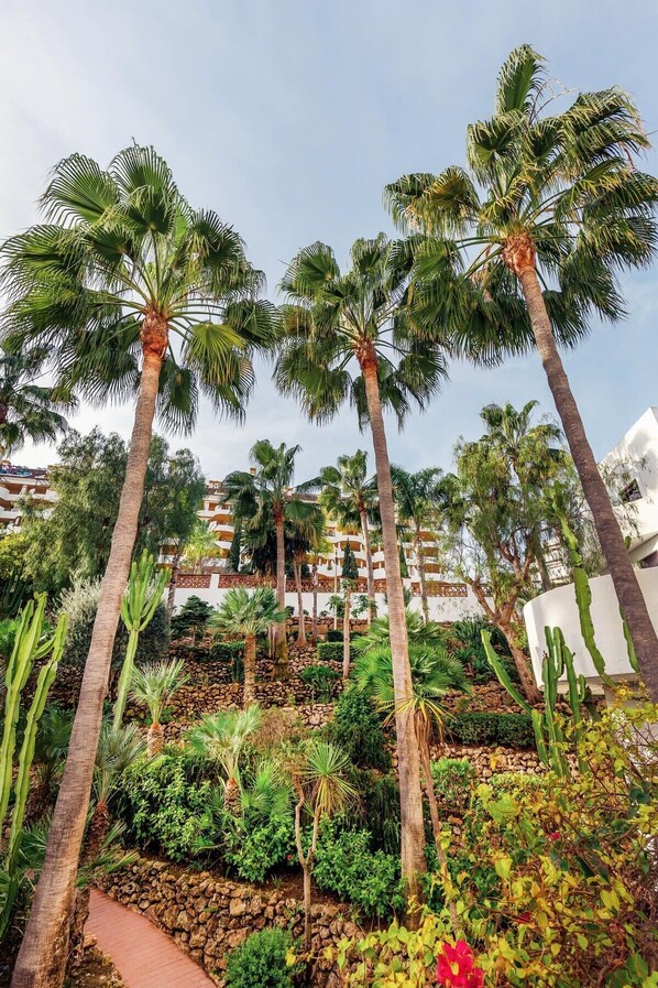 Experience the serene ambiance of La Maestranza, where communal pools and lush gardens create the perfect setting for your Marbella getaway