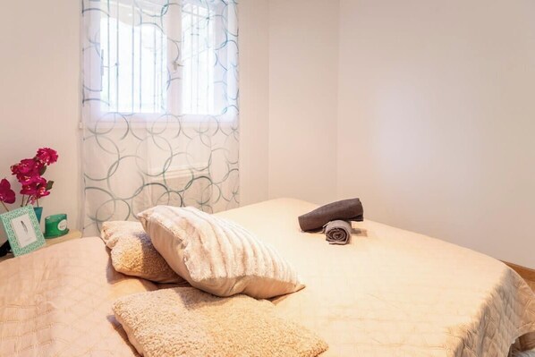 → SLEEPS 4 GUESTS One double bed (140 cm) and one sofa bed (140 cm) in the living room.