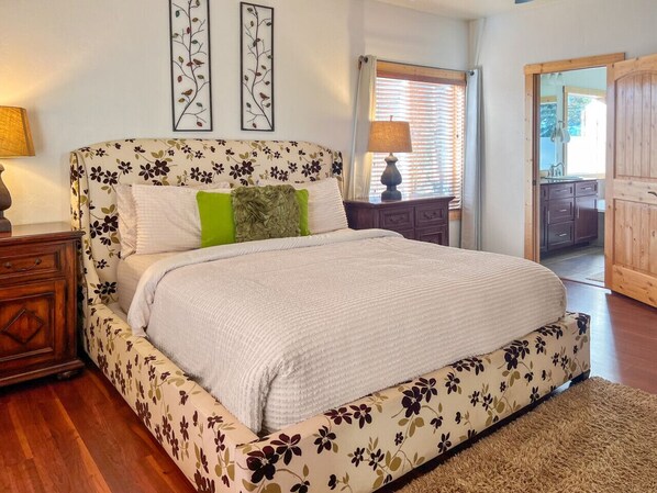 En el interior, en el nivel principal, encontrará una cocina completamente equipada con encimeras de cuarzo (la segunda nevera se encuentra en el garaje), una gran sala de estar principal con una acogedora estufa de pellets, una gran televisión de pantalla plana con satélite, sonido envolvente y "inteligente" blueray reproductor de DVD. El amplio dormitorio principal incluye una lujosa cama king-size de diseño y el baño principal tiene pisos embaldosados, mostradores de cuarzo, una ducha a ras de suelo, bañera de hidromasaje y un gran armario con vestidor. También hay dos dormitorios privados en la planta principal que tienen acceso a un baño completo. Arriba, encontrará otra sala de estar / sala de televisión que es una habitación separada y excelente para ver televisión y para que jueguen los niños, ya que cuenta con un satélite Roku TV (smart TV) y una X-Box 360. En el área de loft grande también hay una mesa de billar, sofás adicionales y una mesa de futbolín. Por último, hay dos habitaciones familiares grandes; uno tiene una cama queen y dos camas gemelas sobre literas y el dormitorio más grande tiene 3 camas literas en la parte inferior y camas gemelas arriba.