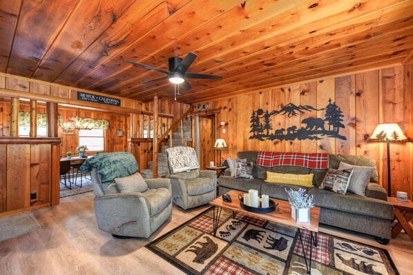 Teresa and Scott’s cabin is amazing! Their attention to detail is seen throughout the cabin. They have everything you need and then some. The inside is beautiful and cozy. The huge outside deck was our favorite. We enjoyed the warm weather from morning to night, soaking in the hot tub to roasting marshmallows over the fire pit. We also enjoyed multiple games of cornhole and our pups loved exploring (on leashes) the huge back area. We can’t wait to plan our next visit!