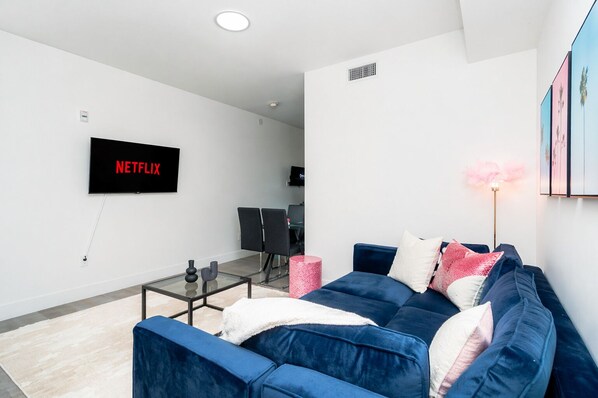Step inside and enjoy a bright, inviting atmosphere with clean lines, contemporary finishes, and natural light throughout. After a day exploring the city, relax in a comfortable living space, stream your favorite shows, or recharge in a setting designed with the modern traveler in mind.