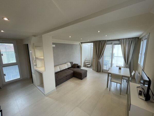 Le propriétaire est très gentil et accessible par message. Appartement très propre et super bien situé (900m de l'entréede Menton).Magasin à proximité...Petit point négatif pour mois, c'est de ne pas pourvoir être dans l'obscurité total dans la chambre et encore plus dans le salon pour les enfants qui dorment sur le canapé lit.Il y a tout de même deux rideaux différents à chaque fenêtre ! Mais j'ai le sommeil légé !Bon matela dans la chambre. Cours de stationnement très bien protégé et fermé. MERCI à Andrea.