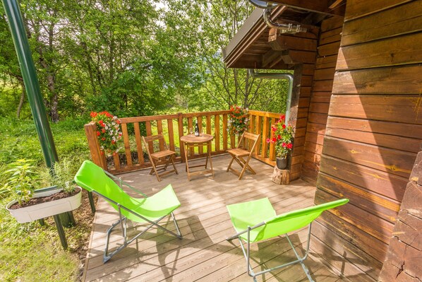 Chalet bien équipé, propre nous l'avons trouvé néanmoins un peu sombre. Il nous a manqué un parasol pour la terrasse devant. Nous avons passé un bon séjour