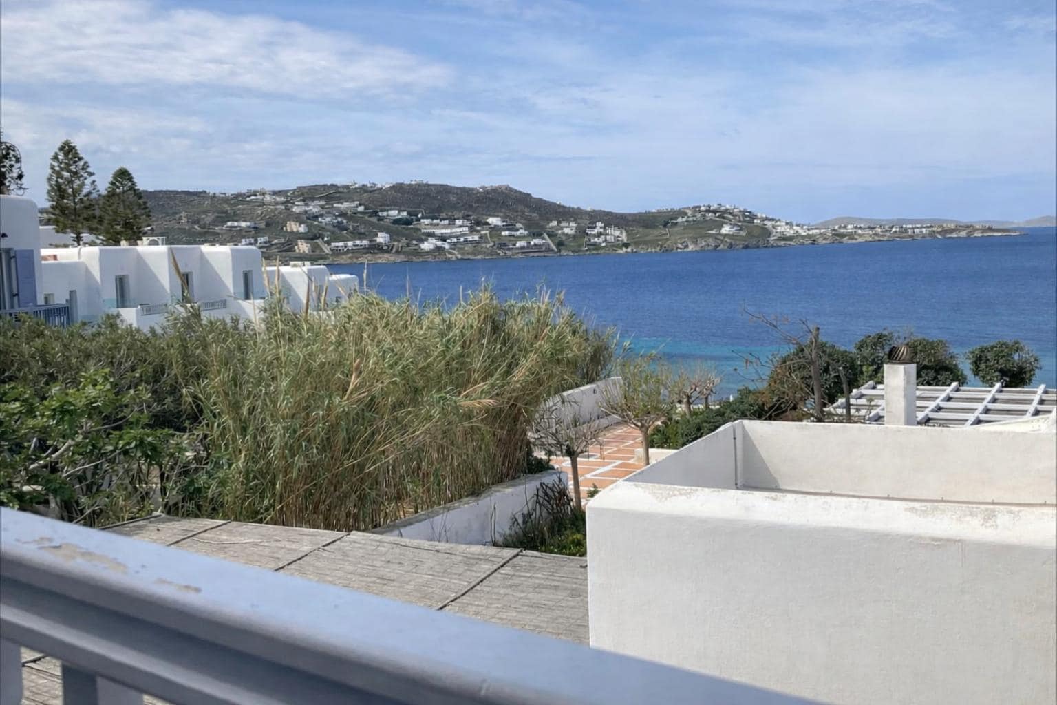 Cara uma das melhores acomodações que já estive. Quarto gigante, banheiro impecável e uma varanda fora de série bem vibes mykonos. O café da manhã era ótimo e o atendimento exemplar. A localização eh absurda de boa e fica a 2 minutos dos ônibus todos que saem por mykonos. Voltaria mil vezes