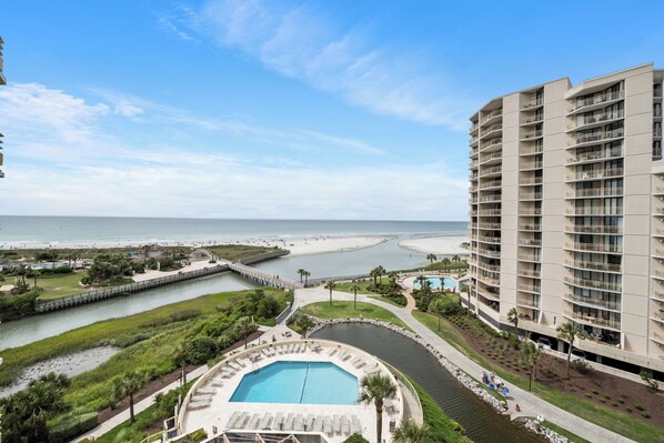 En la playa con un parque acuático, a poca distancia de Barefoot Landing