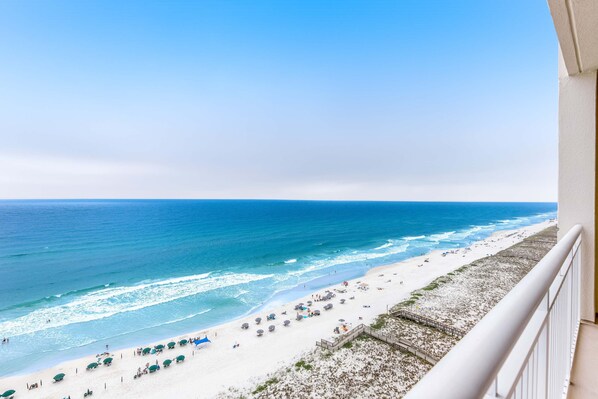 We have visited Navarre to many times to count and stayed at almost every condo on the beach strip. This is the very first time we have had a bad experience. I blame myself for not reading reviews first. The master bedrooms King bed was HORRIBLE!! One entire side was caved in/spring broken or something. We tried to sleep on the opposite side bunched together but kept rolling to the middle. We eventually went to the spare room, but that bed was no better, not broken but very uncomfortable and sinking in the middle. We ended up napping on the couches from loss of sleep, which again were not the best, but better than the beds. The floors could have been cleaner. I understand it is the beach and sand will be inevitable, but one would expect to have clean/sand free floors when entering a newly cleaned condo. The balcony we could not walk out on without shoes. There was some kind of slimy/sticky substance coating the entire thing. Lastly the showers. The hallway bathroom shower had no water pressure whatsoever. Both shower faucets are backwards with the temperature labels. Hot is Cold and vice versa. The showers only were either scalding hot or freezing cold, there was no warm in between. Like i said if i would have read the reviews first I would have seen all of this stated ahead of time and one would think they would have these issues fixed since it has been stated multiple times before.