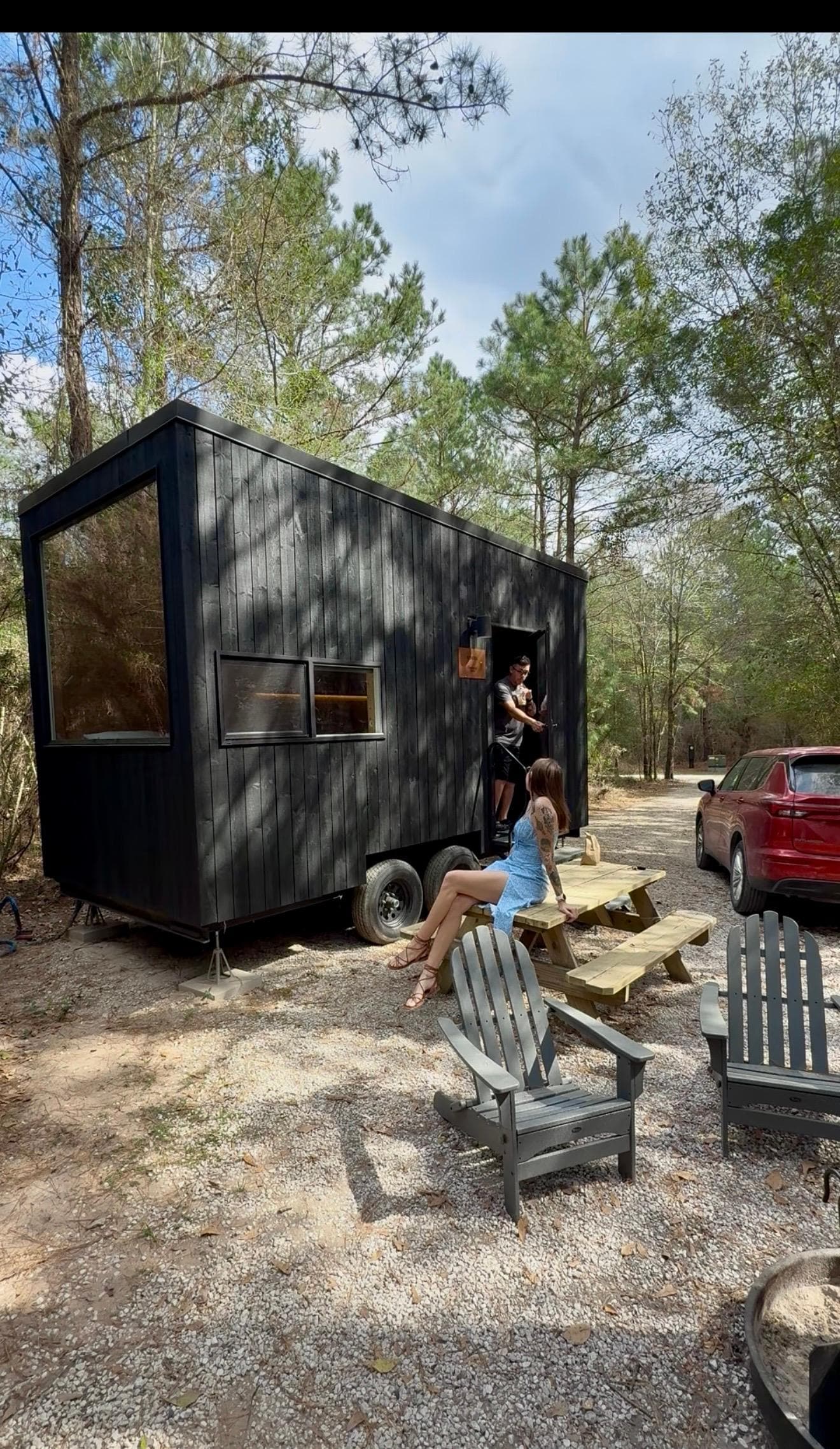 J’ai adoré ce lieu. Au calme dans la forêt. Ils ont plus de 40 cabines mais bien isolées les unes des autres. En arrivant on a vu des biches et lapins. Il y a tout le confort nécessaire (climatisation incluse), même de quoi faire un feu (il faisait trop chaud pour nous pour apprécier en faire un). On a réservé à peine 2h avant notre arrivée, j’ai eu les instructions juste à temps. Les échanges ne se font que par mail ou messagerie. De notre séjour au texas c’est notre meilleure nuit/hôtel. On serait bien resté une nuit de plus mais on devait monter sur dallas avant de prendre notre avion. Je recommande vivement.