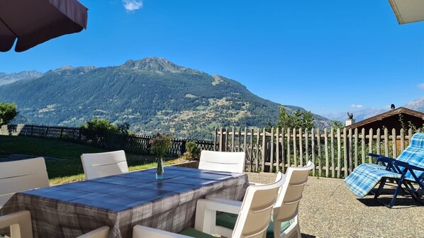 - Exterior: Garden and terrace with view of Nendaz and the Rhone Valley