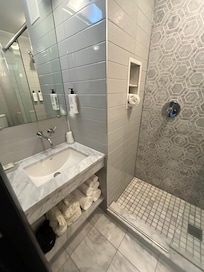 Stayed at the hotel Edison because of the offer of parking and location. We went to NYac to see a Broadway show and the proximity was great. The hotel was right in times square. However, the stay had issues. First, the staff was very rude. I did not feel a warm welcome but rather the staff was very cold and uninviting. Second, the noise throughout the noise was practically unbearable. I know this is the city that never sleeps but the hotel should maintain peace for their guests. There were sounds of construction throughout the evening. Not sure what it was but it was a constant noise of drilling and dragging 24/7. Our room was in the 18 floor and had difficulty sleeping as a result of the sound of a power drill. The food/bar options were awful. Overpriced and poor quality. We had drinks late at the Rum House in the hotel the bartenders barely attended to us rather they were flirting with young women and making us uncomfortable. At one point I left and my fiancé followed after hearing the bartender say, "Give them another shot maybe they'll come home with us". Very disturbing. These bartenders clearly were predators trying to get women drunk for their advantage. I was appalled. Spent 75$ on a few beers and cheap whisky to watch disgusting behavior. The best part of the Hotel Edison is the location and proximity to things but I can't say we had a great stay.
