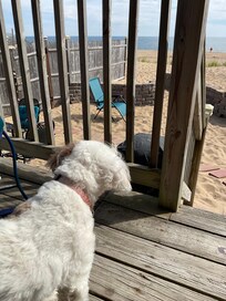 The stay was great overall. When we entered the rental unit there was a lot of sand throughout, and the trash barrels were full and had not been taken to the curb (they had food items left in them so there were some maggots in the barrels, unfortunately). Aside from some trouble trying to fit our garbage into the barrel before the midweek pickup everything else was pretty smooth. Two things I would suggest is replacing the bug screen on the main sliding door, it’s a wonderful feature to have in order to enjoy the wonderful ocean breeze at night, however, the adhesive on the top of the doorframe and side does not seem to be sticking well any longer so there are gaps where bugs can come in. Lastly, the swinging bench on the porch looks lovely and many people have commented about it in the guest book, would have loved to have used it, but it looks like one of the main support rods on the bottom is broken and hanging so we did not want to sit on it and have it break, would be something that should be on the replacement list soon. Aside from those minor suggestions, we enjoyed our stay here, the unit was adorable, had all the amenities we needed and is in a wonderful location, beachfront and an easy walk to all conveniences. I have already sent the VRBO link to a few friends and would recommend it again! Thank you so much for your hospitality!
