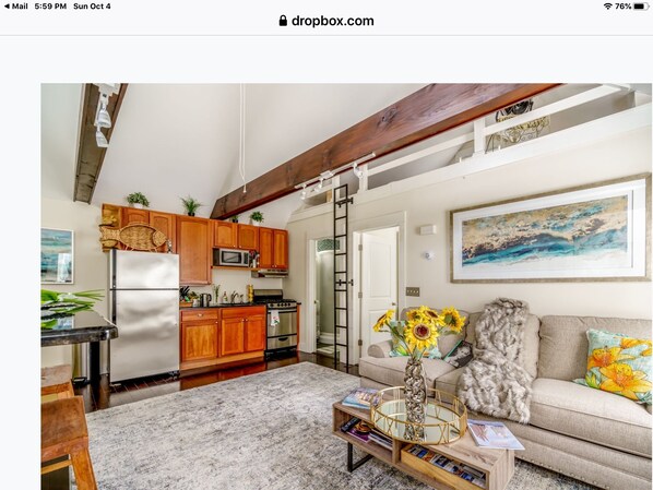 Loved the patio with the quintessential New England garden. It was nice and quiet during the day and night. Good location, not far from Bellevue and Memorial intersection. If you have trouble with stairs, this property is not for you. The bathroom was small, and if you have more than 2 people, I would not recommend since you need to climb a 90 degree ladder to access the loft beds.