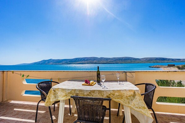 Welcome to our lovely apartment on the beautiful island of Pag, dirctly at the beach. See amazing views of the sea and mountains. Our apartment makes your stay comfy with free WIFI, air conditioning, and easy parking. There's a beach bar and good restaurants just a few steps away for a lively island feel. Explore the special charm of the area, like the cool stone desert of Pag or other pretty places. This place has something special—a small boat ride and an outdoor shower, making your stay super memorable. Come to Pag's island and make our apartment your place for relaxing and having fun.