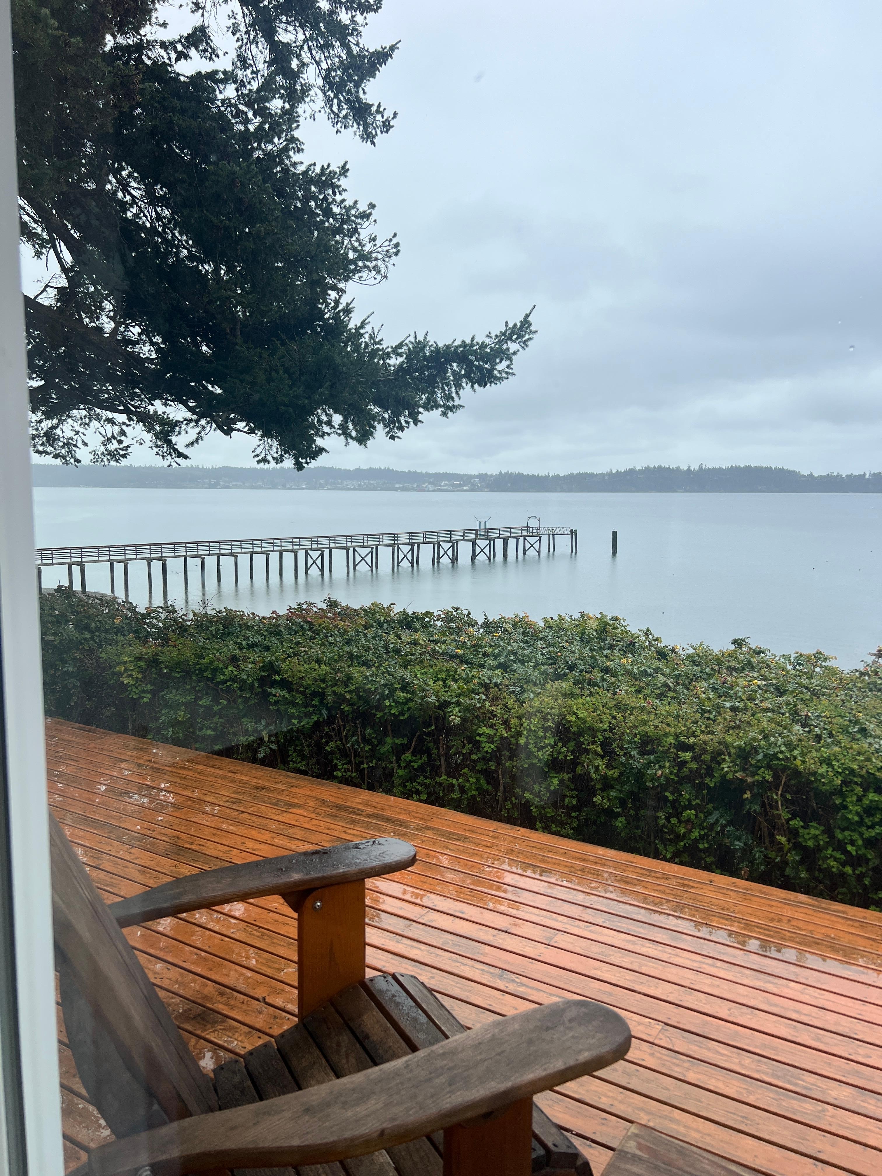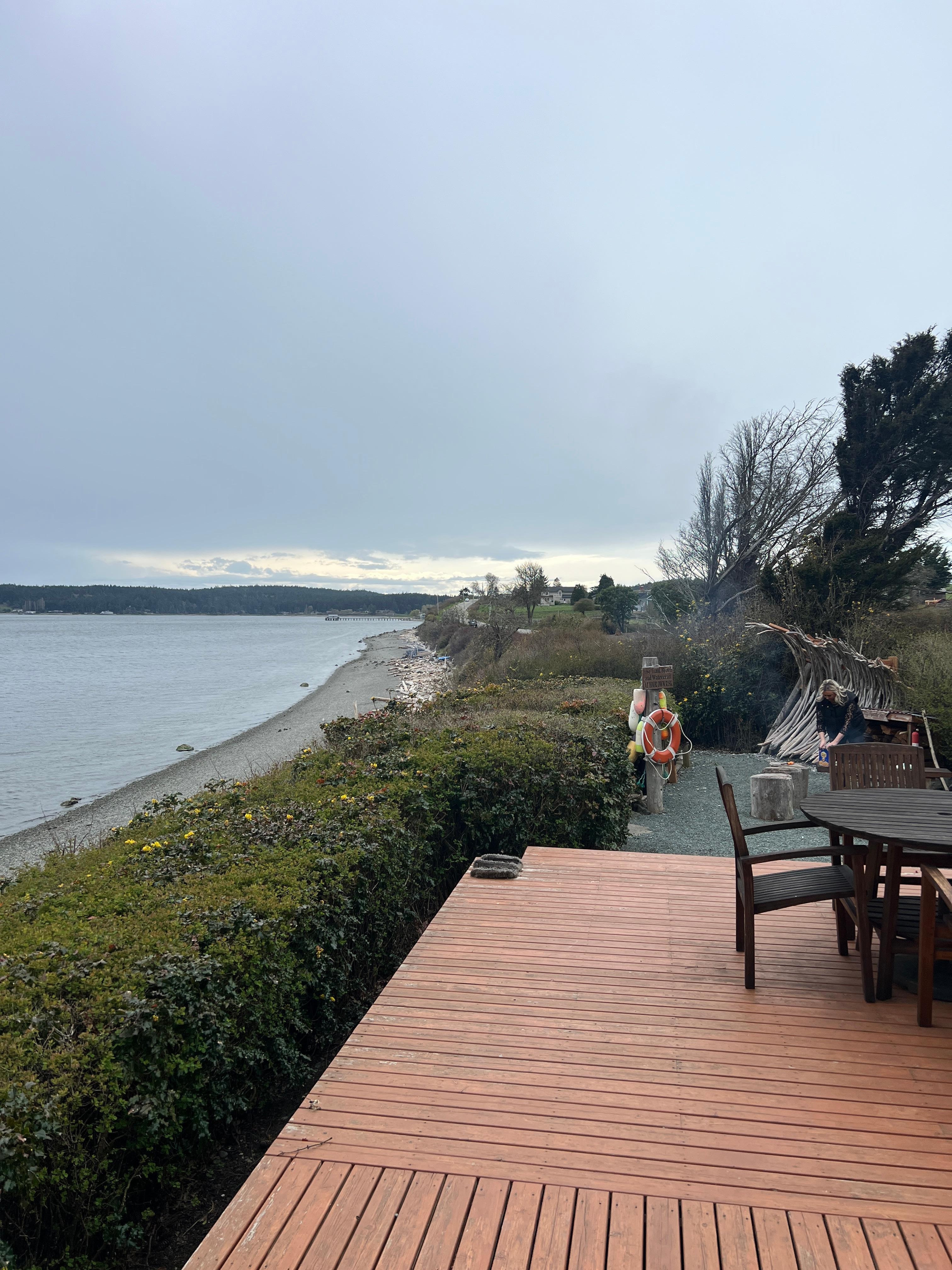 Un promontorio privado al aire libre le permite alejarse más de todo, con vistas aún más fabulosas de la playa y de Penn Cove.