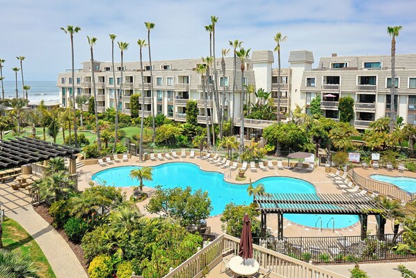 North Coast Village se encuentra entre el puerto de Oceanside y el muelle de Oceanside, y es un destino favorito tanto para parejas como para familias de todo el mundo. El complejo consta de nueve edificios de 4 pisos rodeados por cabañas de 2 pisos, en varios acres de hermosos jardines. Estás a pocos pasos de la arena; No hay caminos para cruzar, ¡esto es un COMPLEJO FRENTE AL MAR! Nadar en la piscina climatizada de tamaño olímpico (una de las dos piscinas y spas), o disfrutar de un paseo romántico en uno de los tramos más hermosos de la playa en el sur de California.