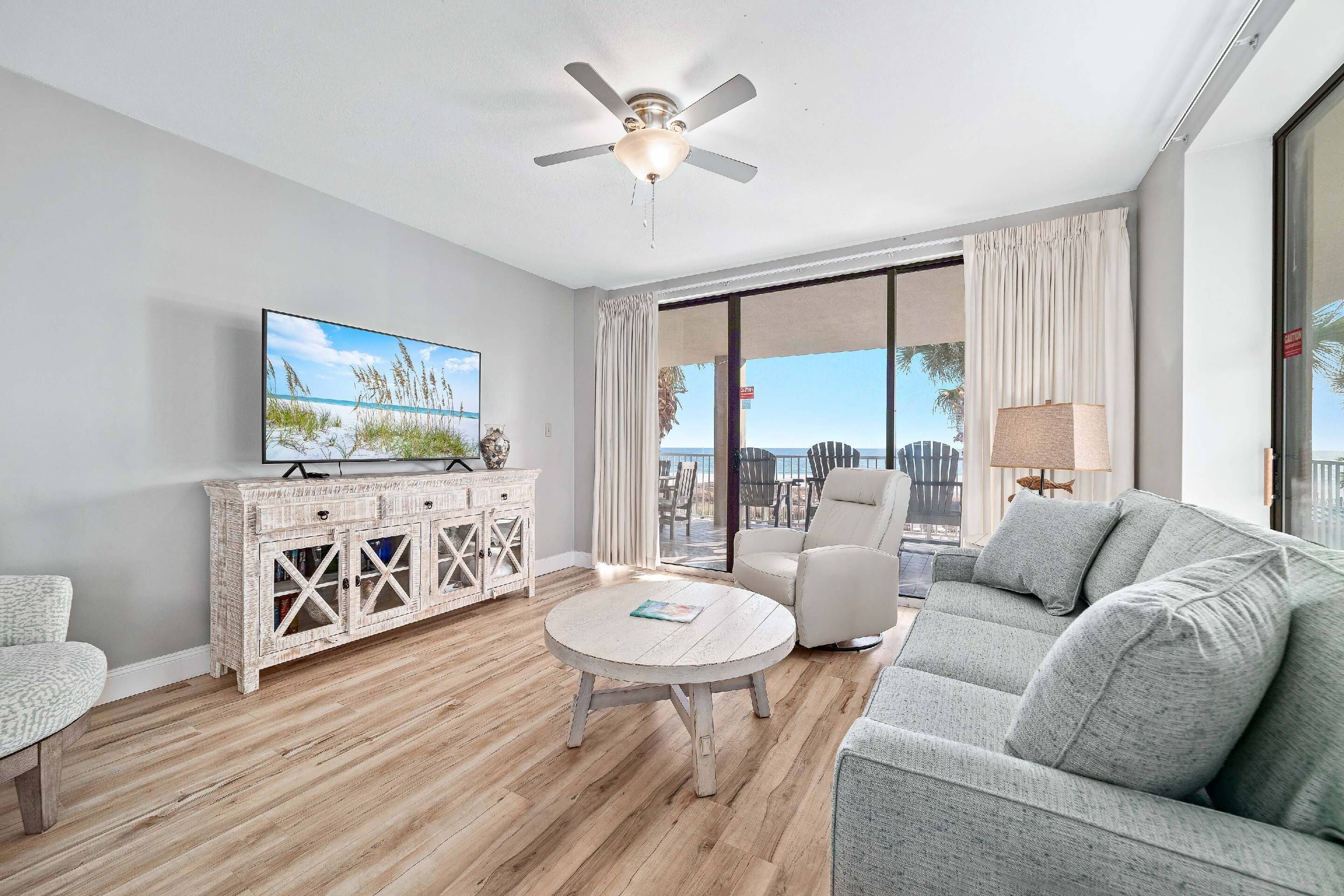 Direct Beachfront Balcony – Relax and soak in expansive Gulf views from your private balcony, complete with outdoor seating.