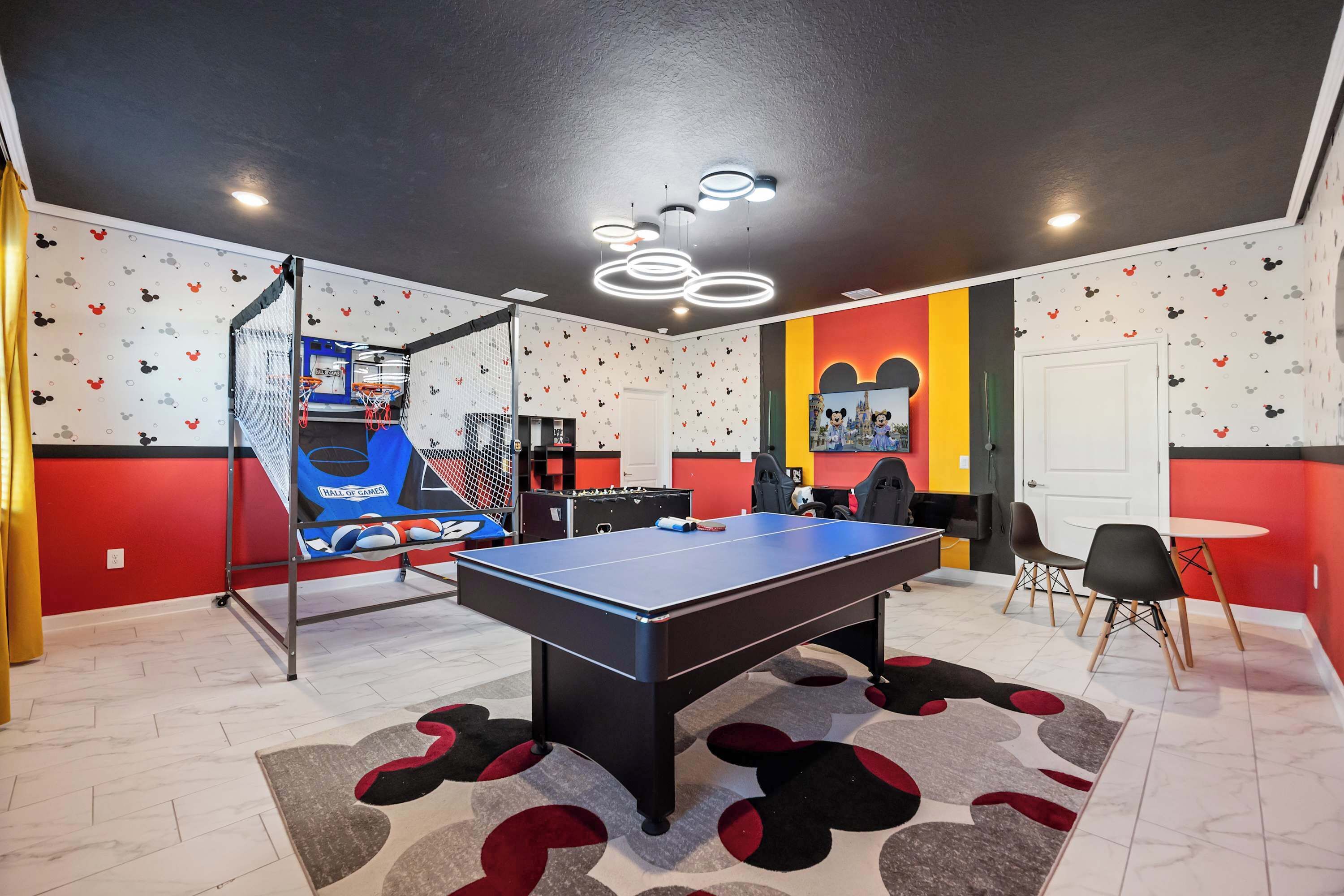 This very stylish 5 bedroom, 4 bathroom, a vacation home can comfortably accommodate 12 guests throughout 2072 square feet of luxurious living space, offering an ideal size and layout for large families and groups traveling together. The moment you first arrive, this home makes a statement! Lush tropical landscaping surrounds the premises, creating a wonderful oasis-like atmosphere. Inside, the house comes with everything you need to feel as relaxed as possible during your stay, from air conditioning and in-unit laundry machines to wireless internet access and a fully equipped kitchen, featuring a breakfast table with all the necessary cooking appliances. Enjoy your culinary masterpieces around the formal dining room table with seating for 8 in elegance. This modern trended home will make you feel as though you have transported to another land where time disappears and relaxation is king! Choose this home on your next vacation to sunny Central Florida.