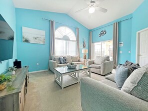The main living area is located at the rear of the home with lots of seating for the whole family to relax. There is cable TV as well as Roku to stream a movie or your favorite shows. High speed Wi-Fi is included.