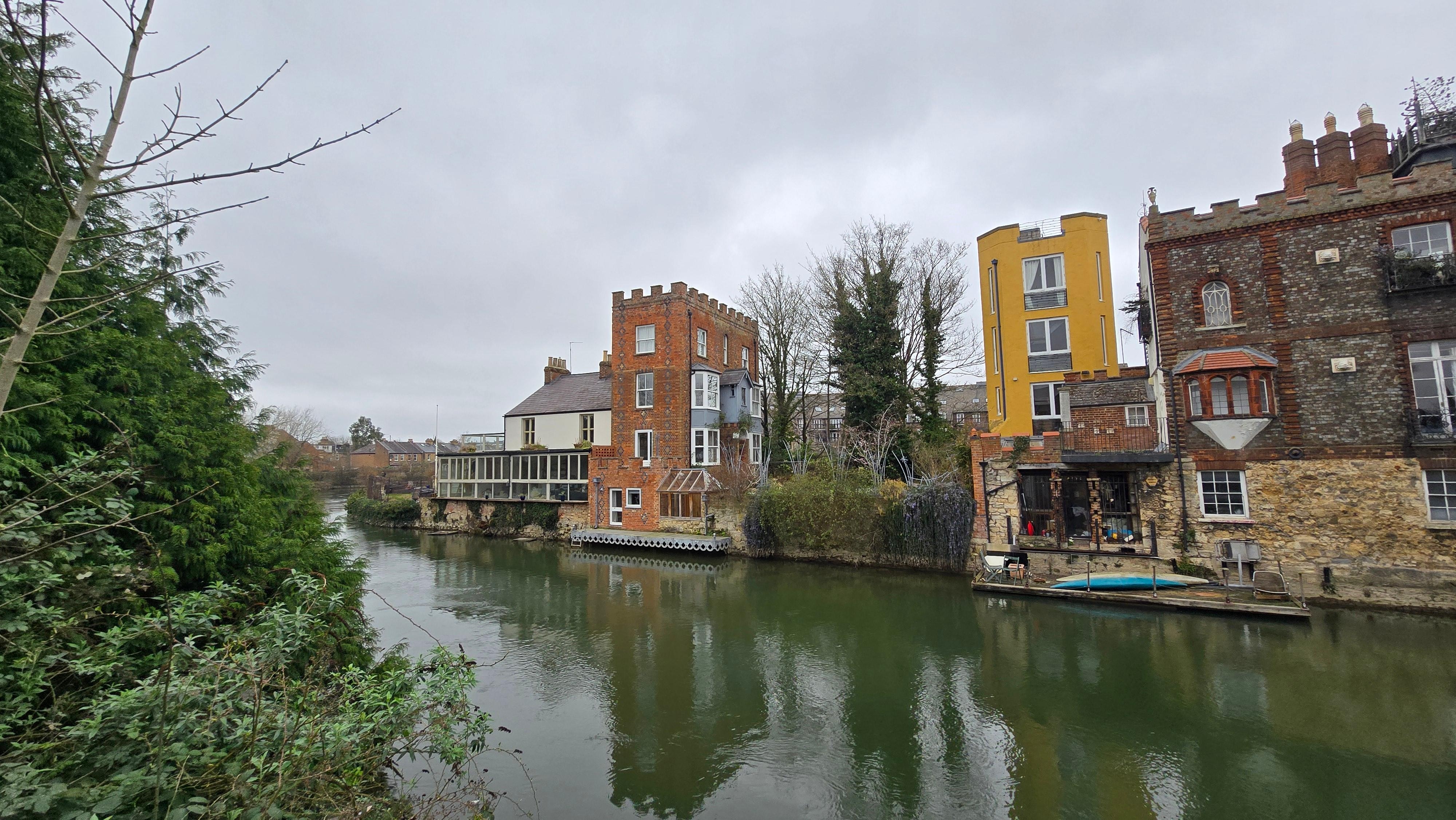 En Studio Salvia, miras hacia abajo a través de los árboles en el Puente Folly en su magnificencia arqueada: los ciclistas y los grandes autobuses pasan por la parte superior, los juegos de ralentí, los botes estrechos y los cruceros fluviales se deslizan por debajo. Este estudio tiene la mejor vista del puente y de los muelles del siglo XVIII que se encuentran más allá, que son el pub Head of the River. Desde esta sala se mira el corazón mismo de la histórica Oxford: la antigua casa de peaje, la desmoronada piedra de los muelles. Por la noche, todos están iluminados y reflejados en el agua.