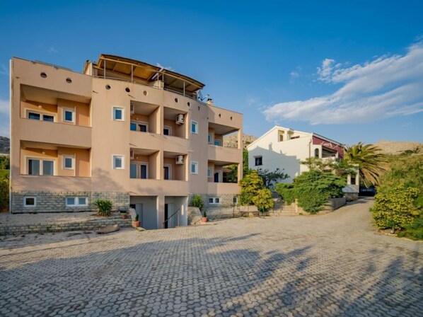 Casa con varias viviendas "Melandura", bonita. A 14 km del centro de Pag, lugar tranquilo, soleado, elevado, a 130 m del mar, a 130 m de la playa, en una calle sin salida, en el campo. Comunitario: terreno 500 m2, piscina (11 x 4 m, 80 - 150 cm de profundidad, Disponible por temporada: 25.Abr. - 26.Sep.) con escalera interior. Ducha exterior, tenis de mesa, terraza, muebles de jardín, barbacoa. En el inmueble: acceso a internet, gimnasio, lavadora (uso comunitario, extra). A disposición: canoa (extra). Aparcamiento junto a la casa en el mismo terreno. Tienda 450 m, restaurante 130 m, parada autobús 800 m, playa de arena, playa de gravilla 130 m. Atracciones en los alrededores: NP Paklenica 50 km, NP Krka 90 km. A tener en cuenta: la propiedad con ref: HR3955.111 está situada en la misma parcela. De uso compartido con la vecina casa de apartamentos HR3955.111: zona para tomar el sol, cocina exterior (mesa de comedor, 4 hornillos, horno, frigorífico, 3 fregaderos, hervidor de agua, café filtrado, barra). En la planta baja inferior de la casa hay una sala con barbacoa, mesas y bancos de madera. Se puede alquilar una lancha a motor del propietario (extra). Posibilidad de pesca con el propietario de la casa (extra).