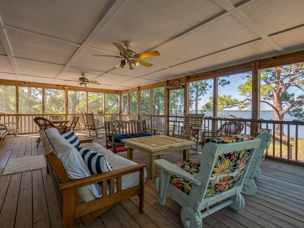 Bill's Bay Breeze is the perfect spot for a family vacation or a weekend getaway! The screened-in back porch is relaxing, with waterfront views of the bay and the wildlife! This house sleeps 8 and is roughly 10 houses down from Public Beach Access 3 on Alligator Point! You can also enjoy Alligator Point's Marina right down the road where you can launch your boat to enjoy a day of fishing and the Tiki Hut where they offer burgers, seafood and drinks! Bald Point State Park is just minutes away!