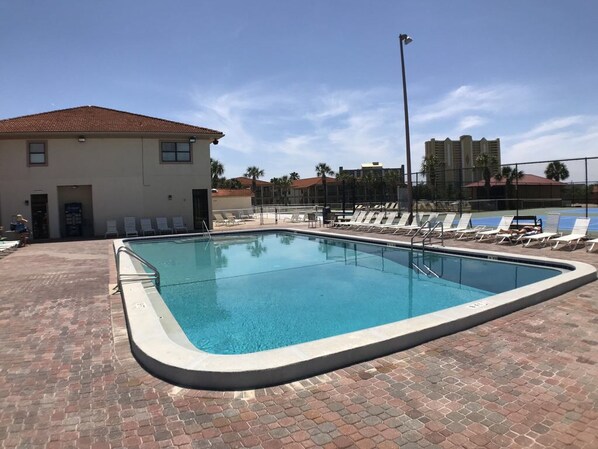 10) Horizon South tiene entradas tanto en Front Beach Road como en Back Beach Road (Hwy 98), lo cual es excelente cuando desea evitar el tráfico para un viaje rápido a Pier Park o Frank Brown Park (1. 5-2 millas de distancia), 30A o Destin. Las excelentes comodidades incluyen 4 piscinas (piscina principal climatizada en invierno), una piscina para niños, bañera de hidromasaje, cancha de tenis / pickle ball, cancha de baloncesto, mini golf, shuffle board, columpios y una casa club con mesas de billar y gimnasio. Hay raquetas y pelotas de tenis y pelotas de pickle, putters y pelotas de minigolf, pelotas de baloncesto, juguetes para la piscina y gafas en el armario de la playa.