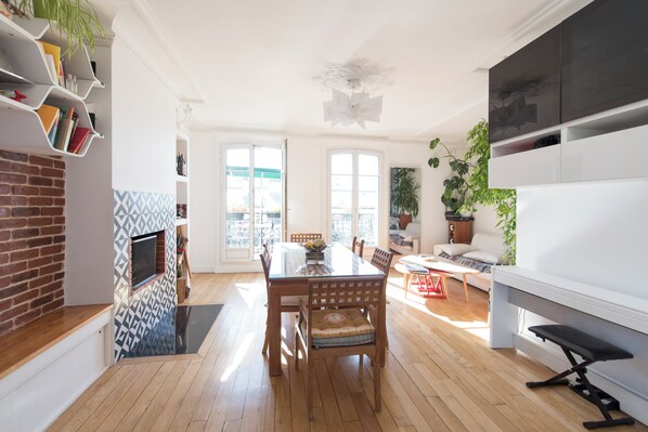 Se puede acceder al balcón desde la sala de estar y tiene vistas a los alrededores, incluidos los tejados de París. ¡También hay una mesa y sillas para relajarse bajo el sol parisino! También puede acceder al balcón desde la cocina y el dormitorio principal.