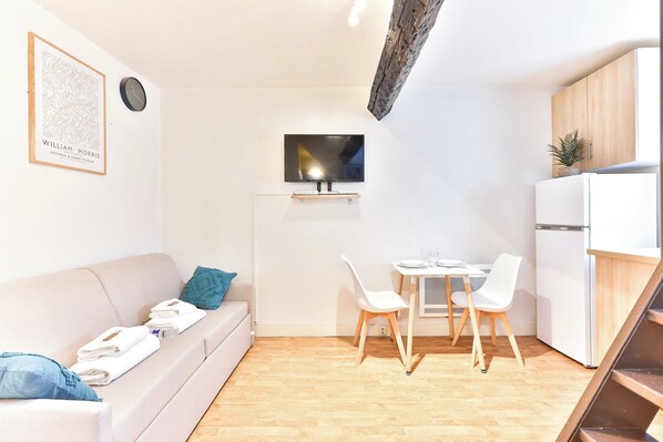 Las habitaciones de Le Marais - Rue de Bretagne disponen de lavadora/secadora y cafetera y tetera. Se ofrece televisión digitales.