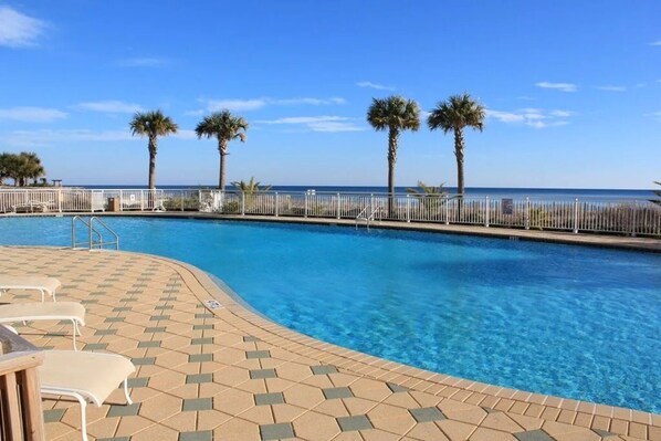 This was our first, but not last, visit to this beautiful resort. The condo was clean, the beds were comfortable and it had all the amenities you need to cook meals -from crockpot, griddle, several pots, pans, skillets. The balcony was large with comfortable seating, but the view was the best. The rental chairs & umbrella were very reasonable & it was a close walk to the beach. The pool was nice & the indoor pool could come in handy.