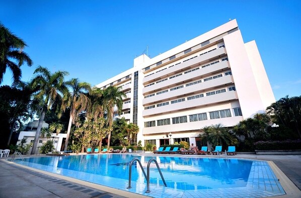 Hotellet er gammelt og slidt. Meget gammelt og slidt. Der er kun gæster på 5. sal hvilket gør resten af hotellet mørkt og lidt uhyggeligt. Morgenmaden består af thairetter som smager ok. Poolområdet er fint. Receptionisten talte ikke engelsk, men det gik alligevel.
