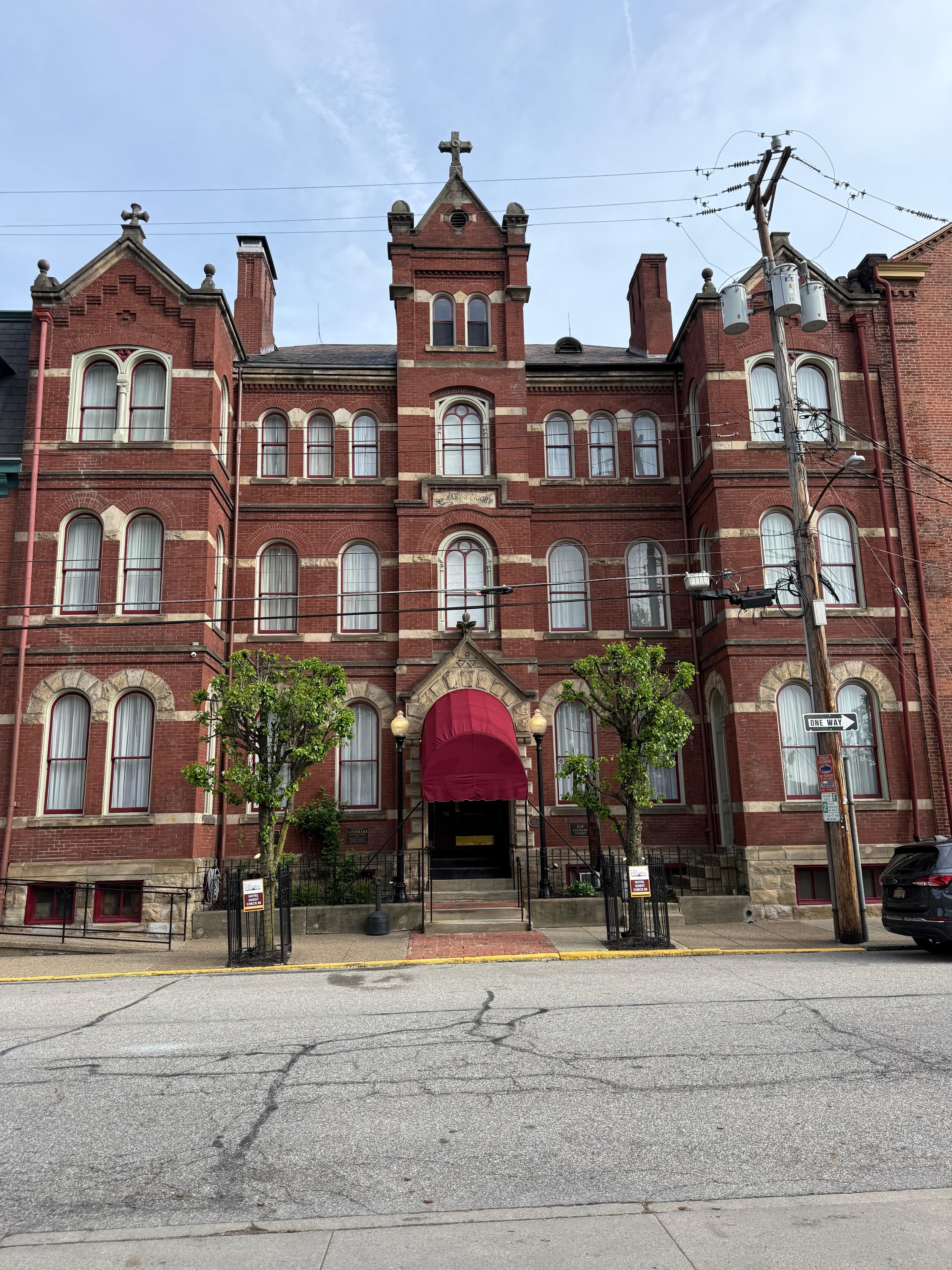 Stayed a Thursday and Friday night for a medical procedure at Allegheny General Hospital on Friday so didn’t roam around very much. Very close to the I279 exit and the hospital. Very clean and quiet in our 3rd floor room. A lot of staff was visible but never in the way. Very professional. Obviously a very old historic building but very well preserved and maintained. Nice atmosphere.