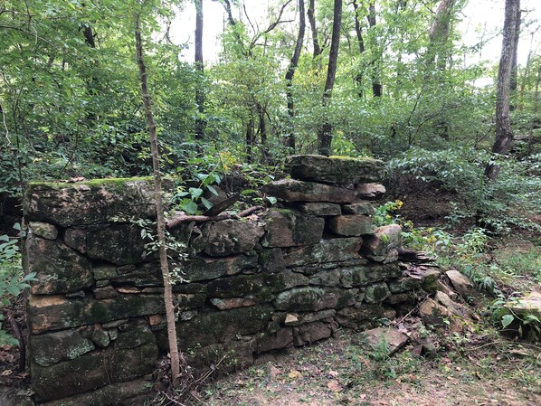 Farmstay on a 14 acre farm Queen bed upstairs. Down stairs has another queen bed and bathroom, kitchen with sink, stove, oven, microwave, and complimentary kitchen-cups . There is a twin sleeper sofa in dining room. Front, Back and Upstairs porches wireless internet and RukuTv. 14 acre farm with walking trails, old mill and creek. Pet fee $25 dailyNo aggressive breeds including Pitbulls. All monies go toward our Horse sanctuary 501c nonprofit. Cleaning Fee included in price